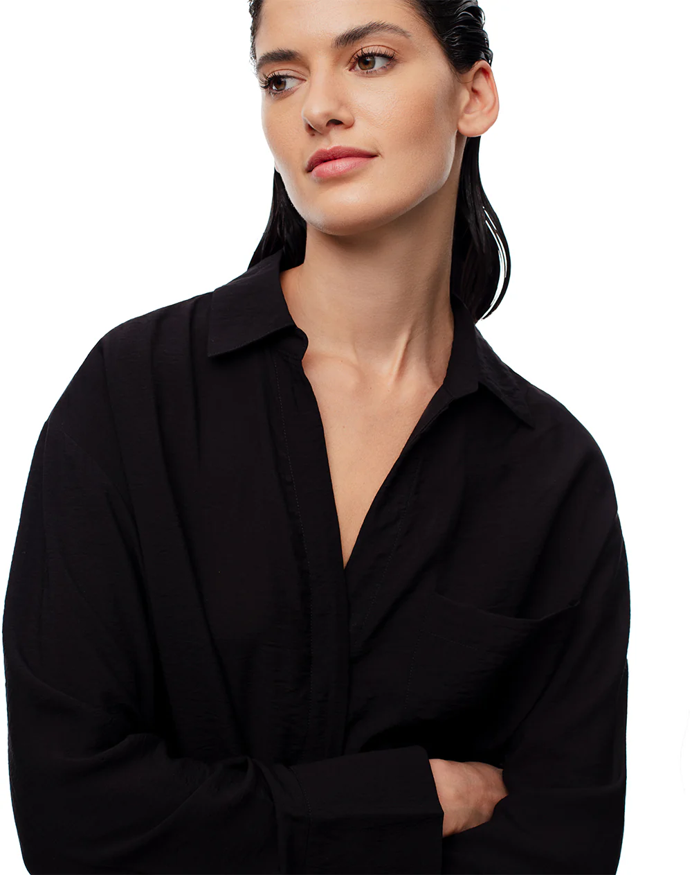 Camisa manga larga regular negra mujer