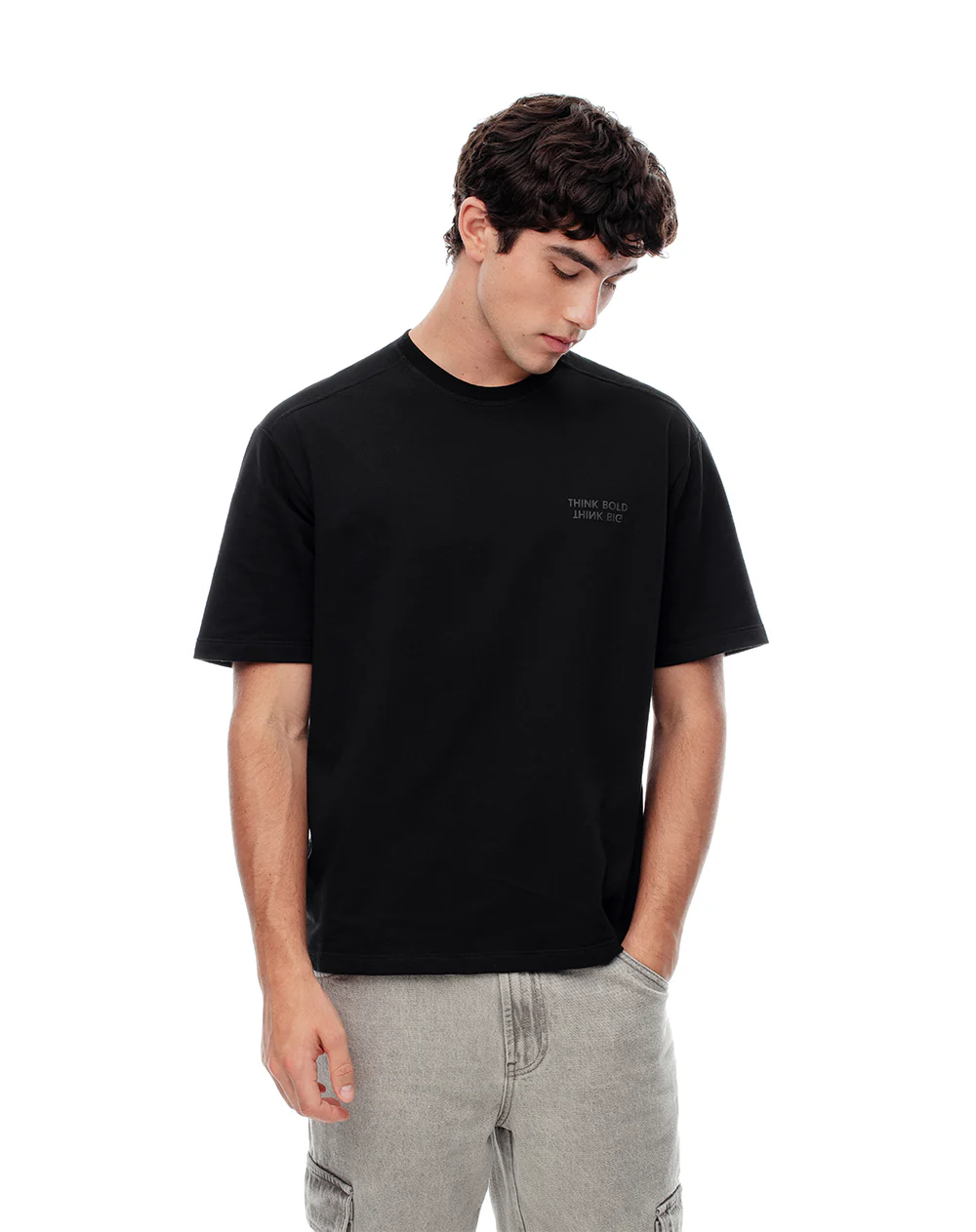 -70%Camiseta oversize algodón negra hombre—