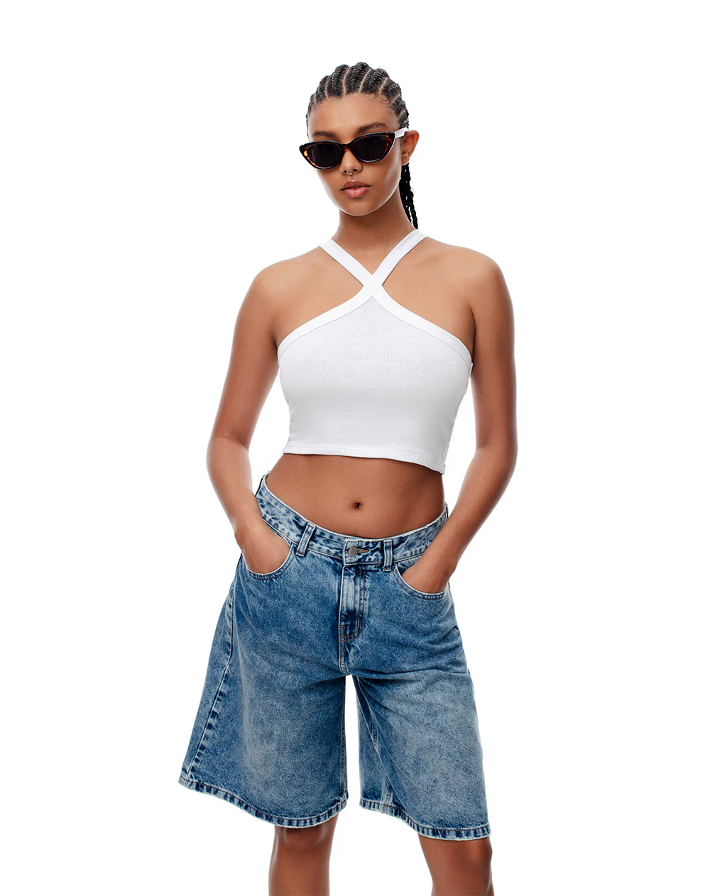 Crop top slim rib algodón blanco mujer