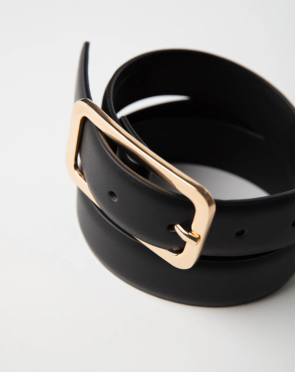 - Cinturón realizado en poliuretano de textura plana con hebilla metálica a contraste