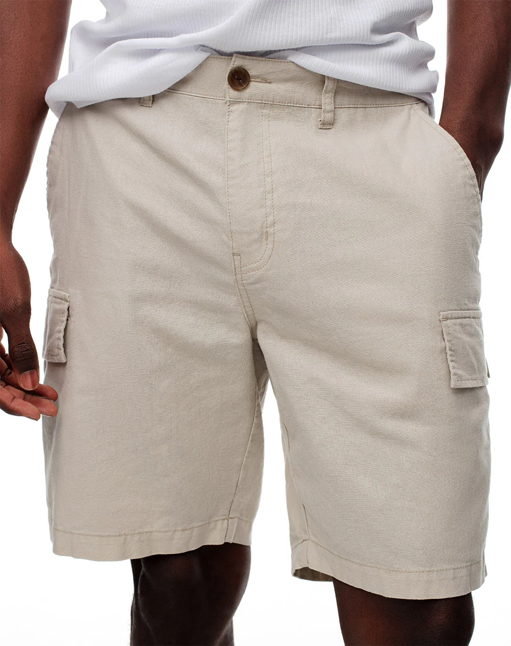 -70%Bermuda regular lino caqui hombre—