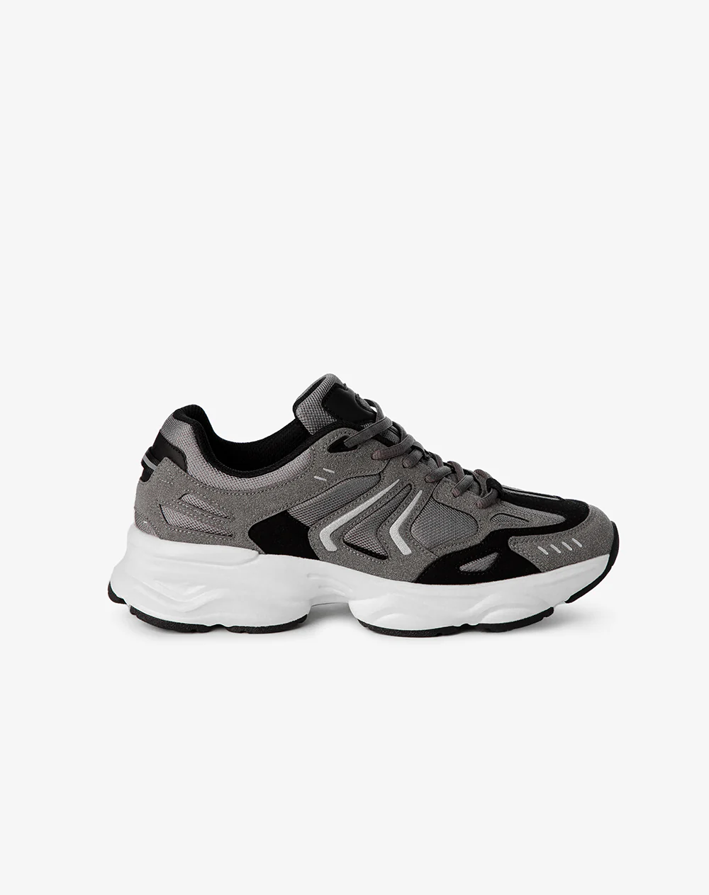 - Zapatillas deportivas de Hombre. Disponibles color Gris. Detalle de multipiezas y combinación de mat eriales. Cierre mediante cordones. Altura piso 45 cm. La plantilla Fabricada con poliuretano y cauc ho que otorga una excelente resistencia y transpirabilidad. Composición: Capellada: 60% Sintético 4 0% Textil Forro: 100% Textil Plantilla: 100% Textil Suela: 100% Sintético