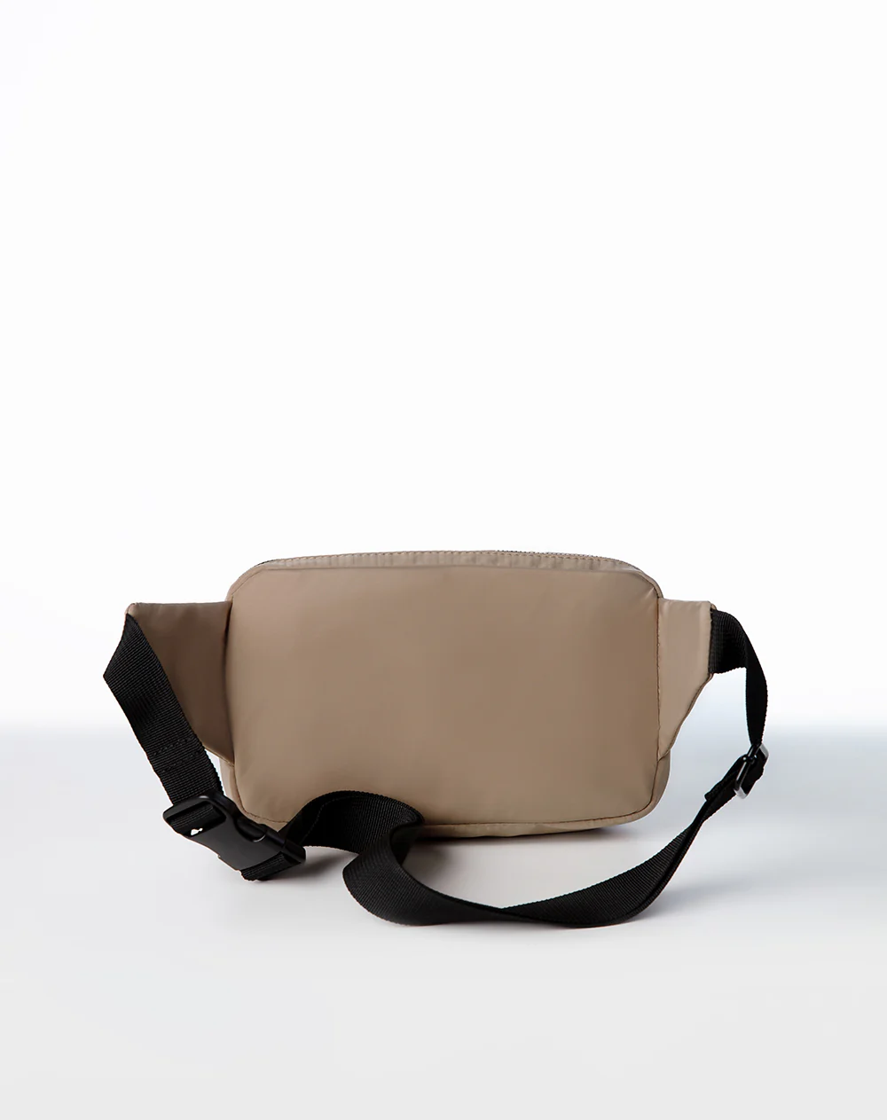 - Riñonera de tejido efecto nylon Asa de cuerpo ajustable Detalle de bolsillos exteriores en la part e delantera Cierre mediante cremallera