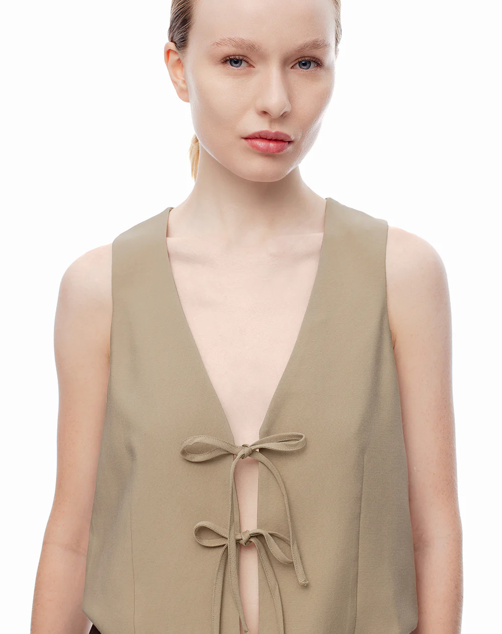 - Chaleco escote en V manga sisa y cierre frontal con anudados
